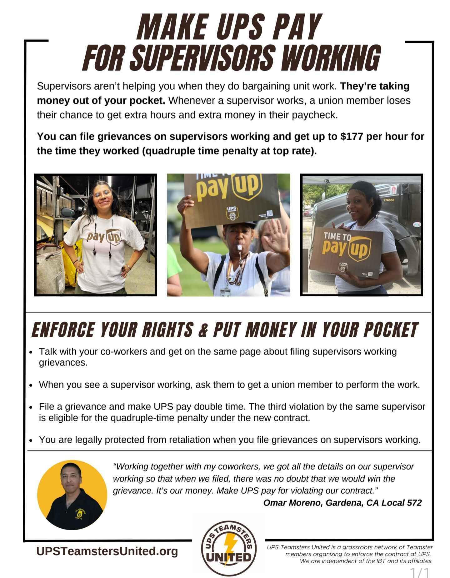 Supervisors aren’t helping when they do bargaining unit work–they’re taking money out of your pocket. Whenever supervisors work, a union member loses their chance to get hours.There are winning tactics to stop supervisors working and make UPS pay for violations. We cover them in this webinar!
