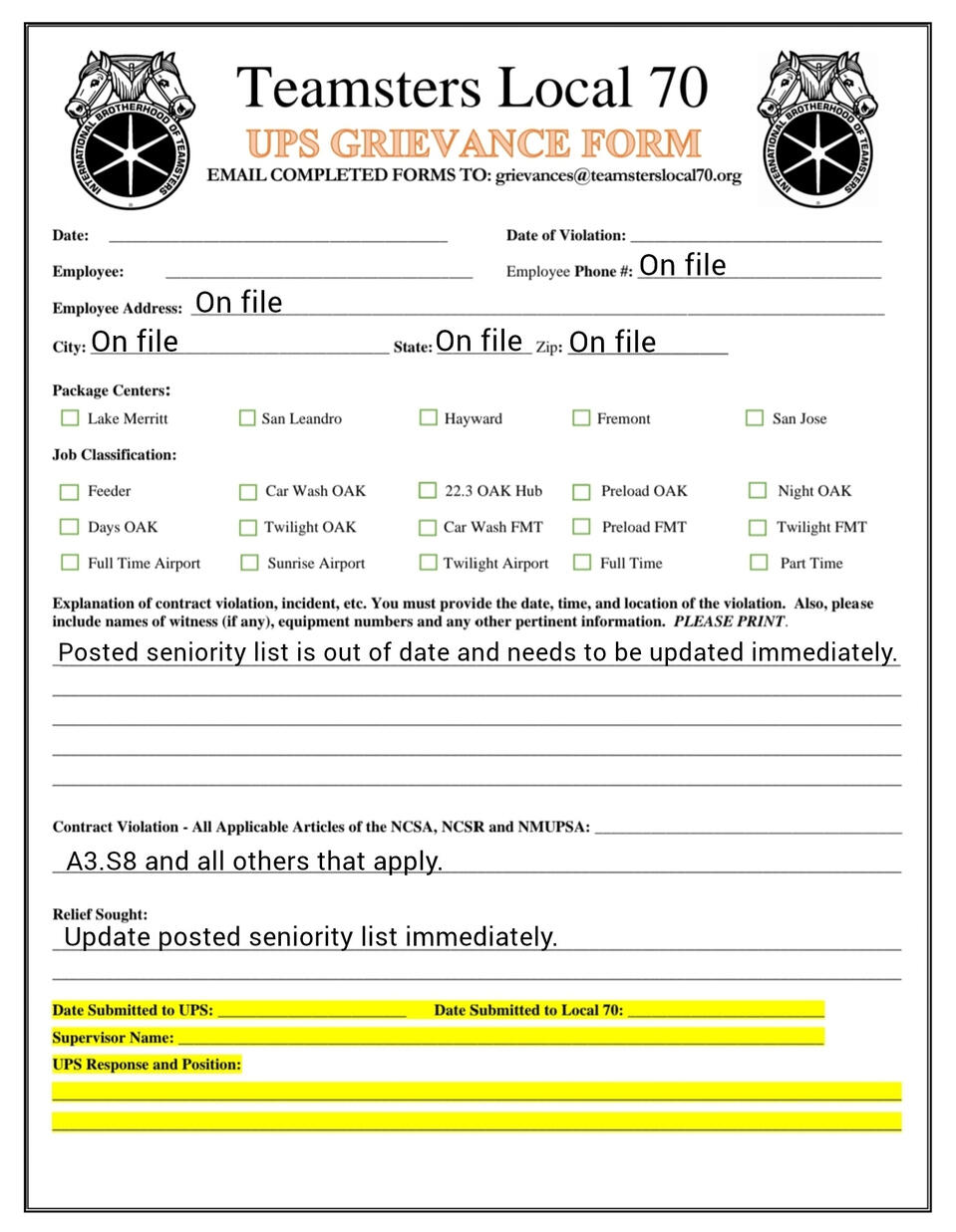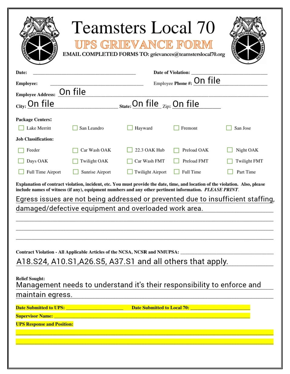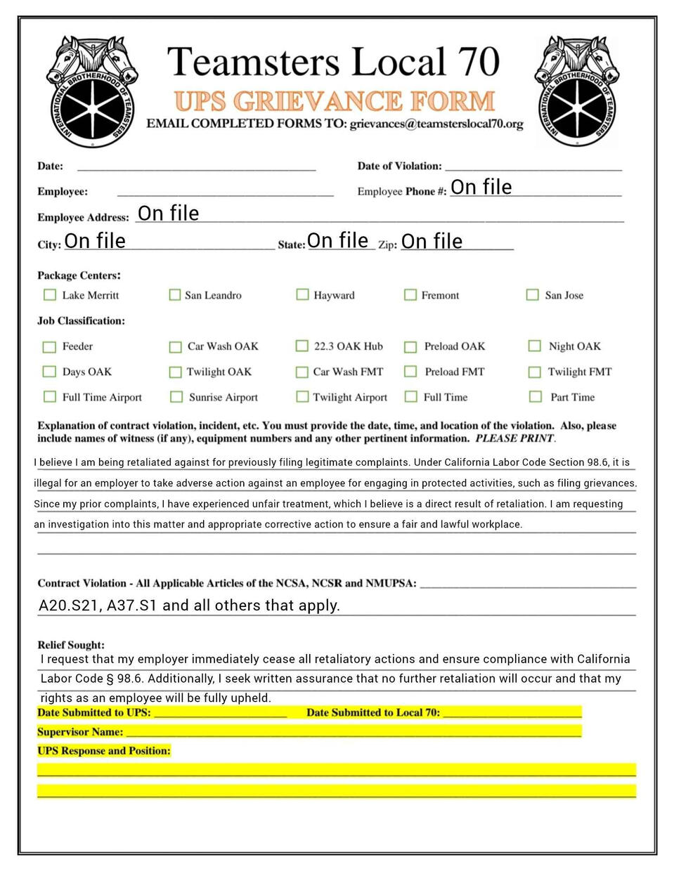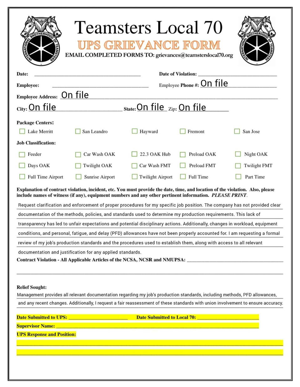 Grievance forms you can fill out on your phone. templets and fresh copies available