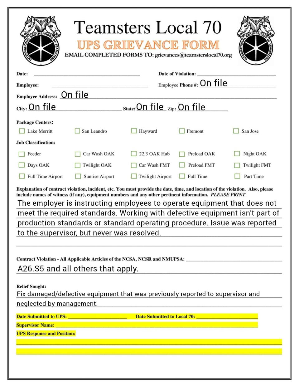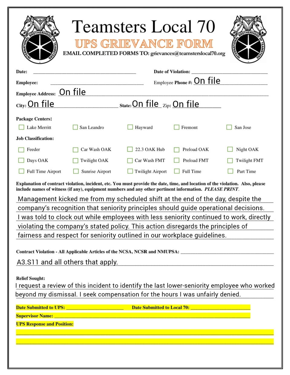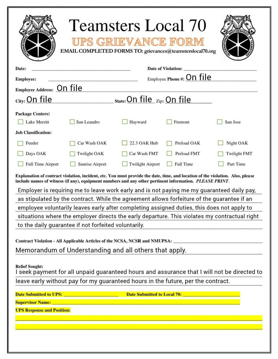 Grievance forms you can fill out on your phone. templets and fresh copies available