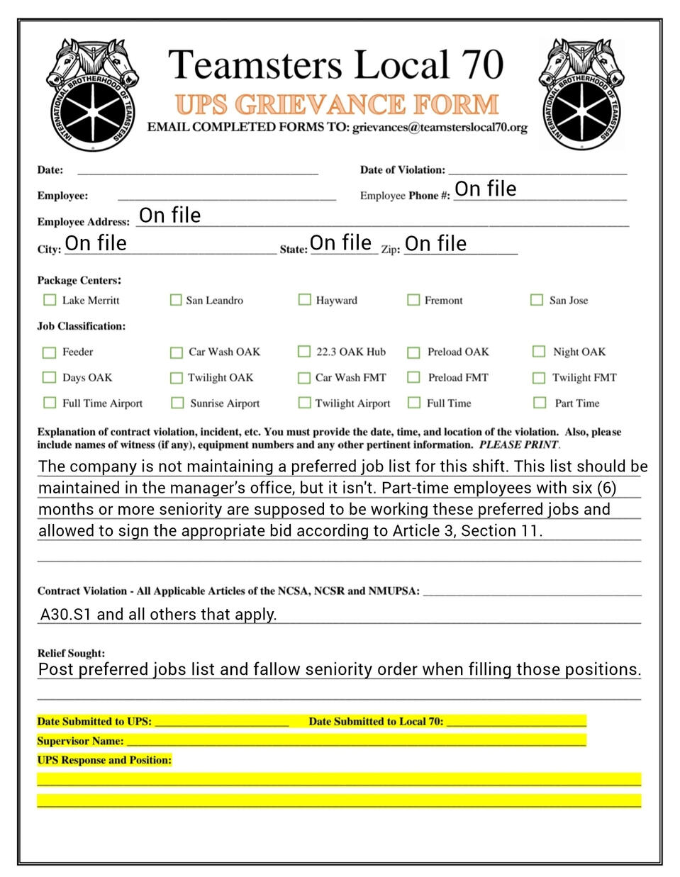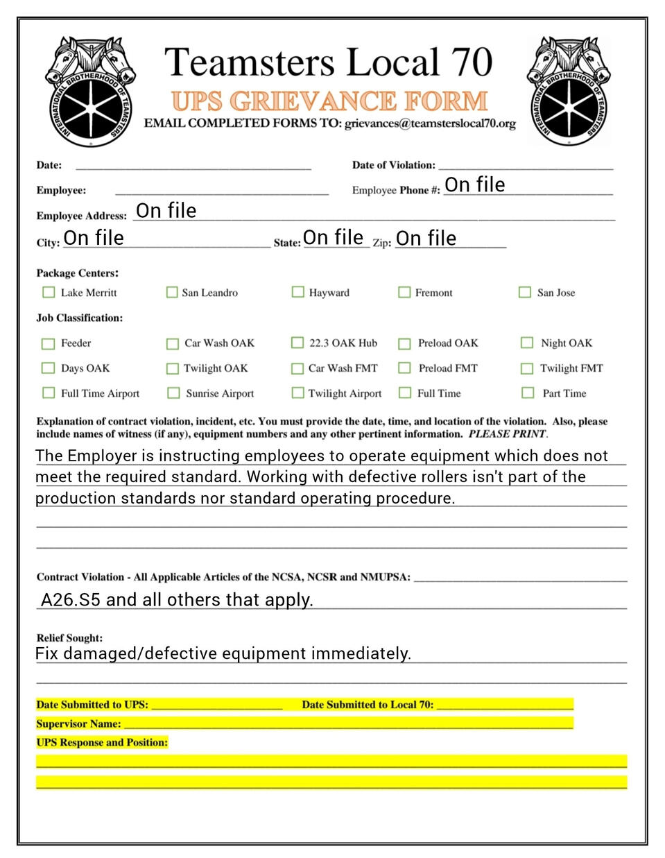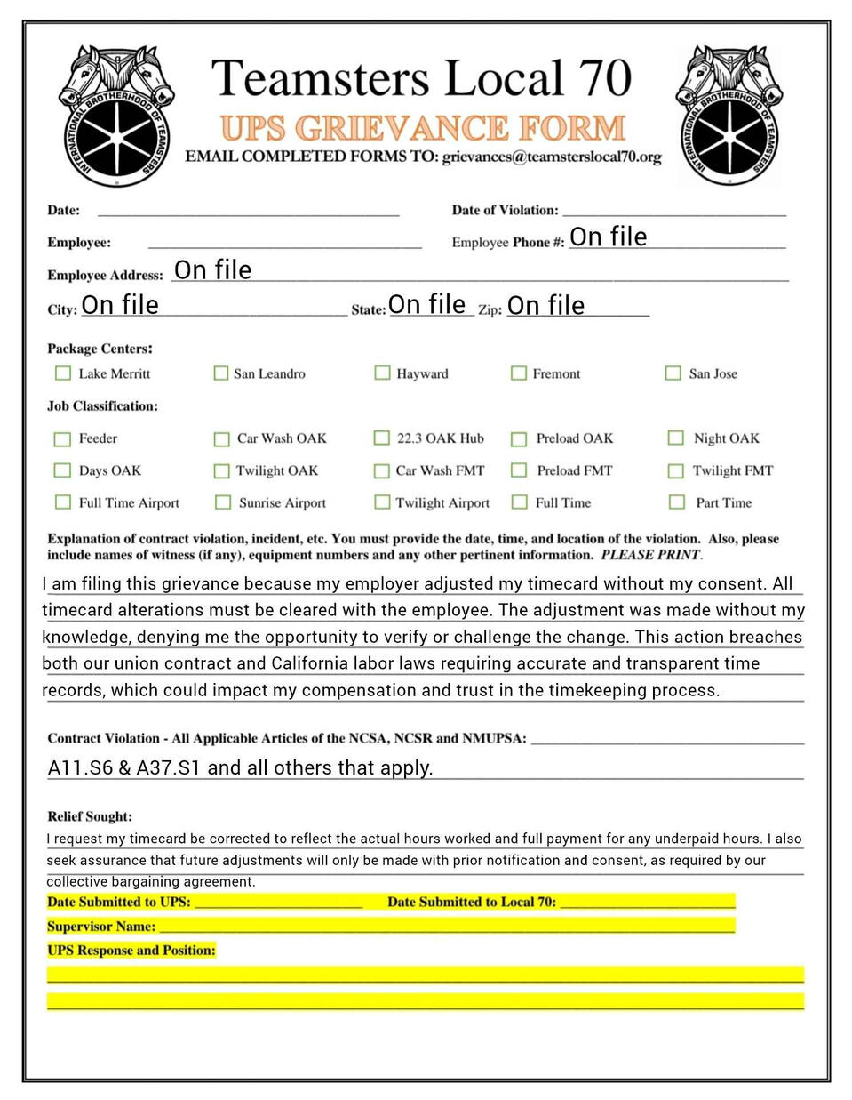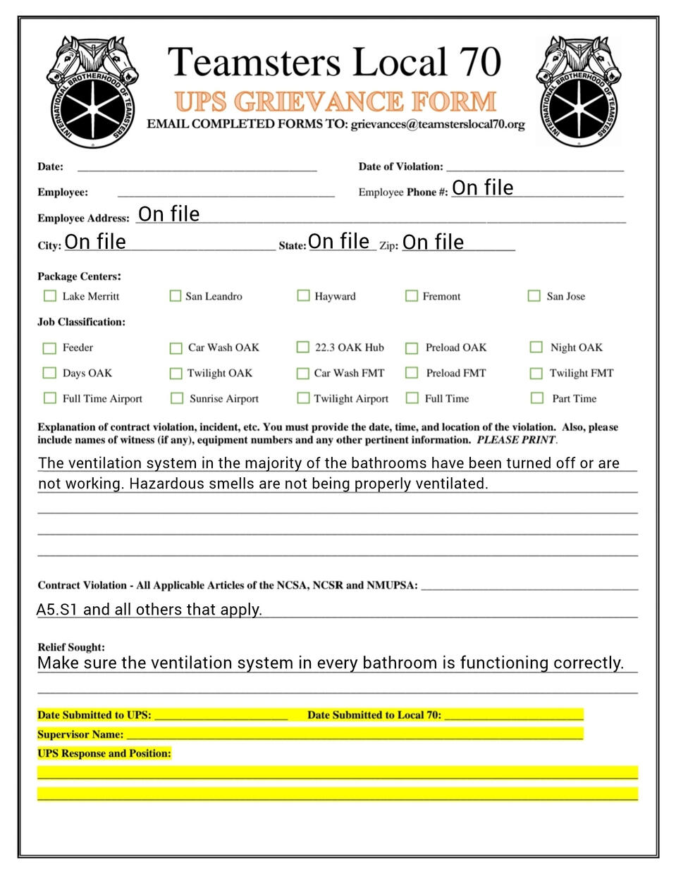 Grievance forms you can fill out on your phone. templets and fresh copies available