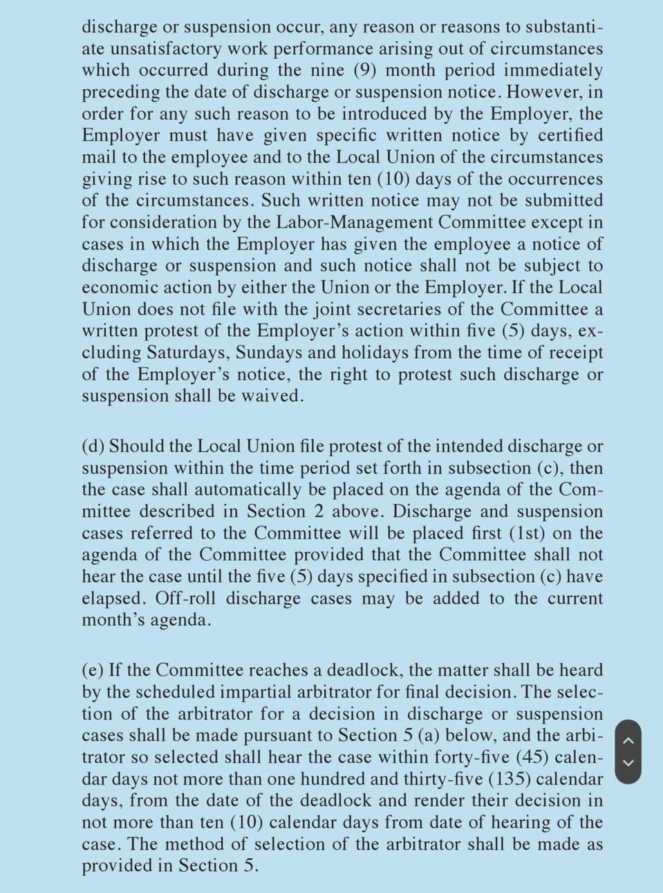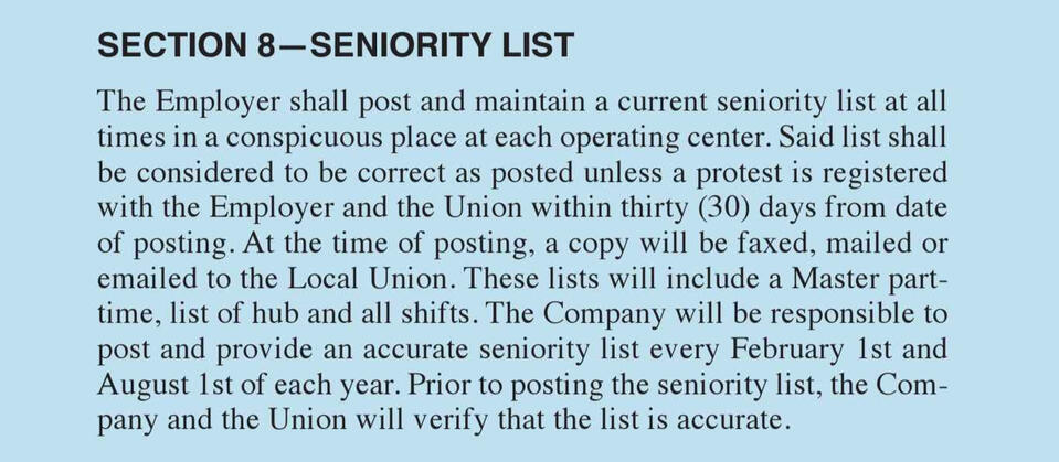 If two employees submit grievances before the upcoming panel, then seniority still determines who gets the penalties.