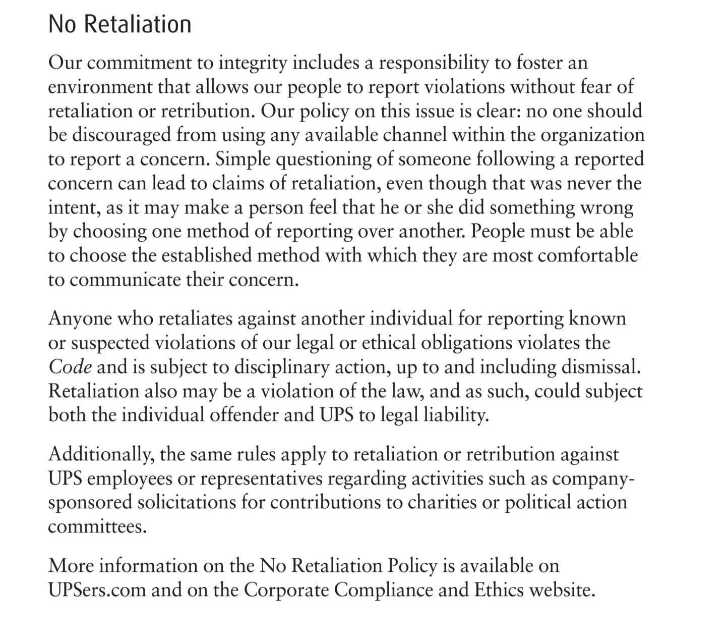 NO RETALIATION
