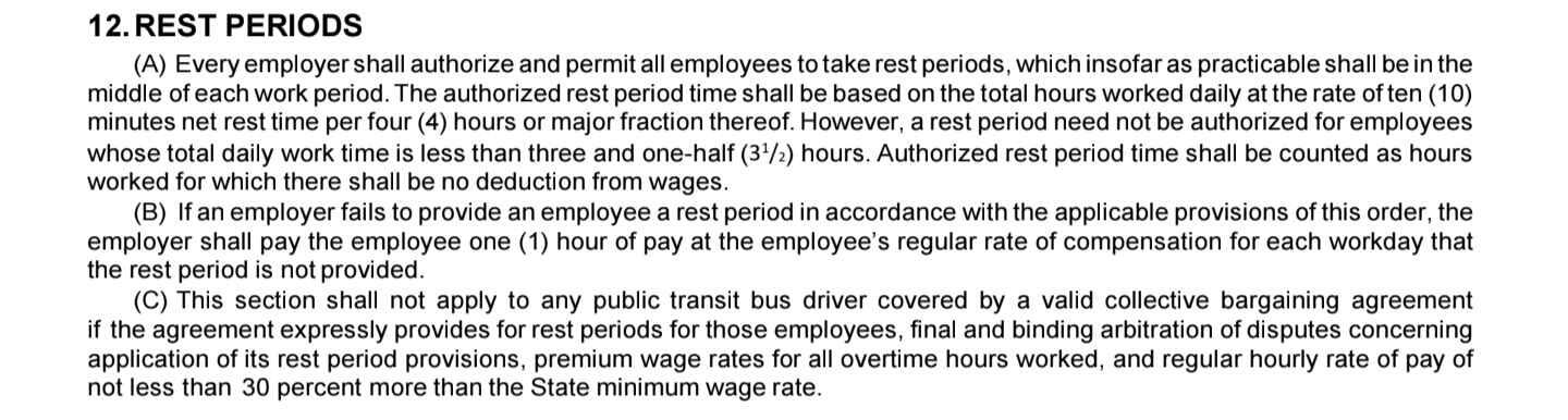 California rest period laws