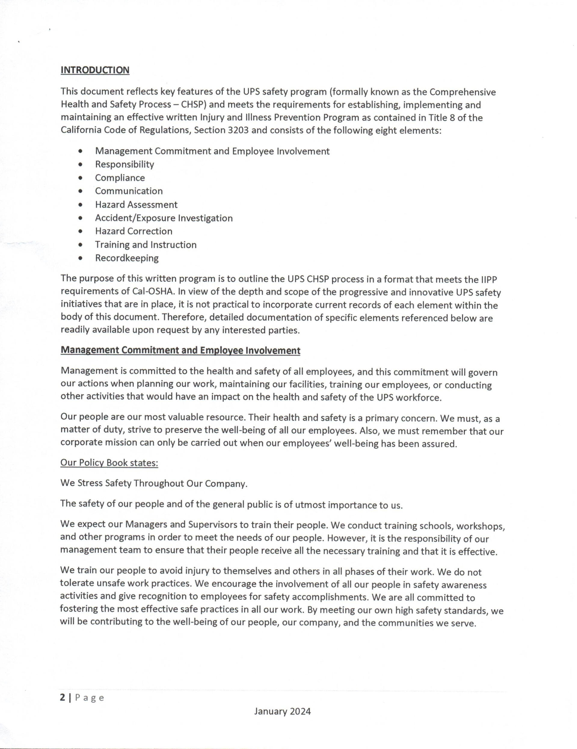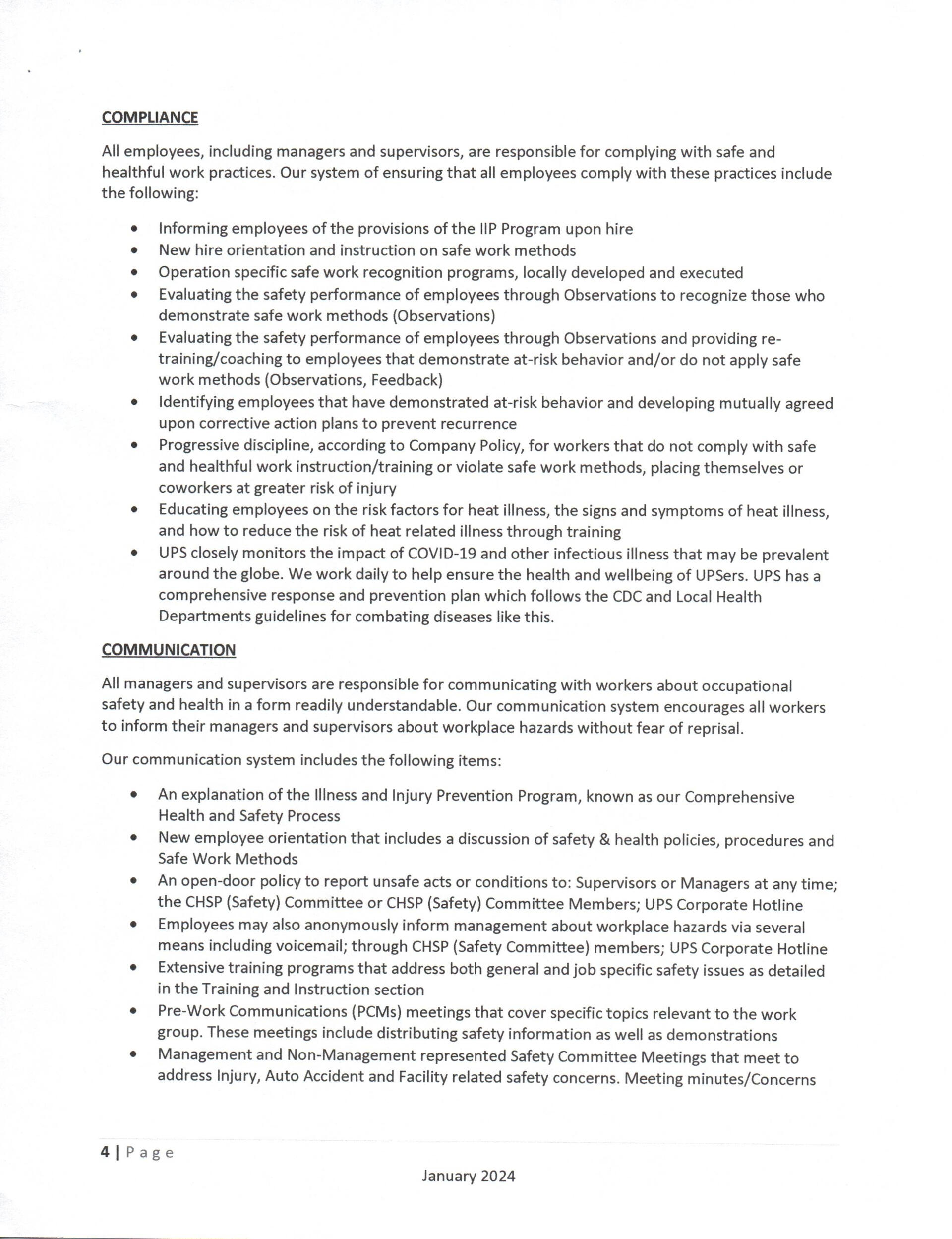 What it the Comprehensive Health and Safety Process for UPS?