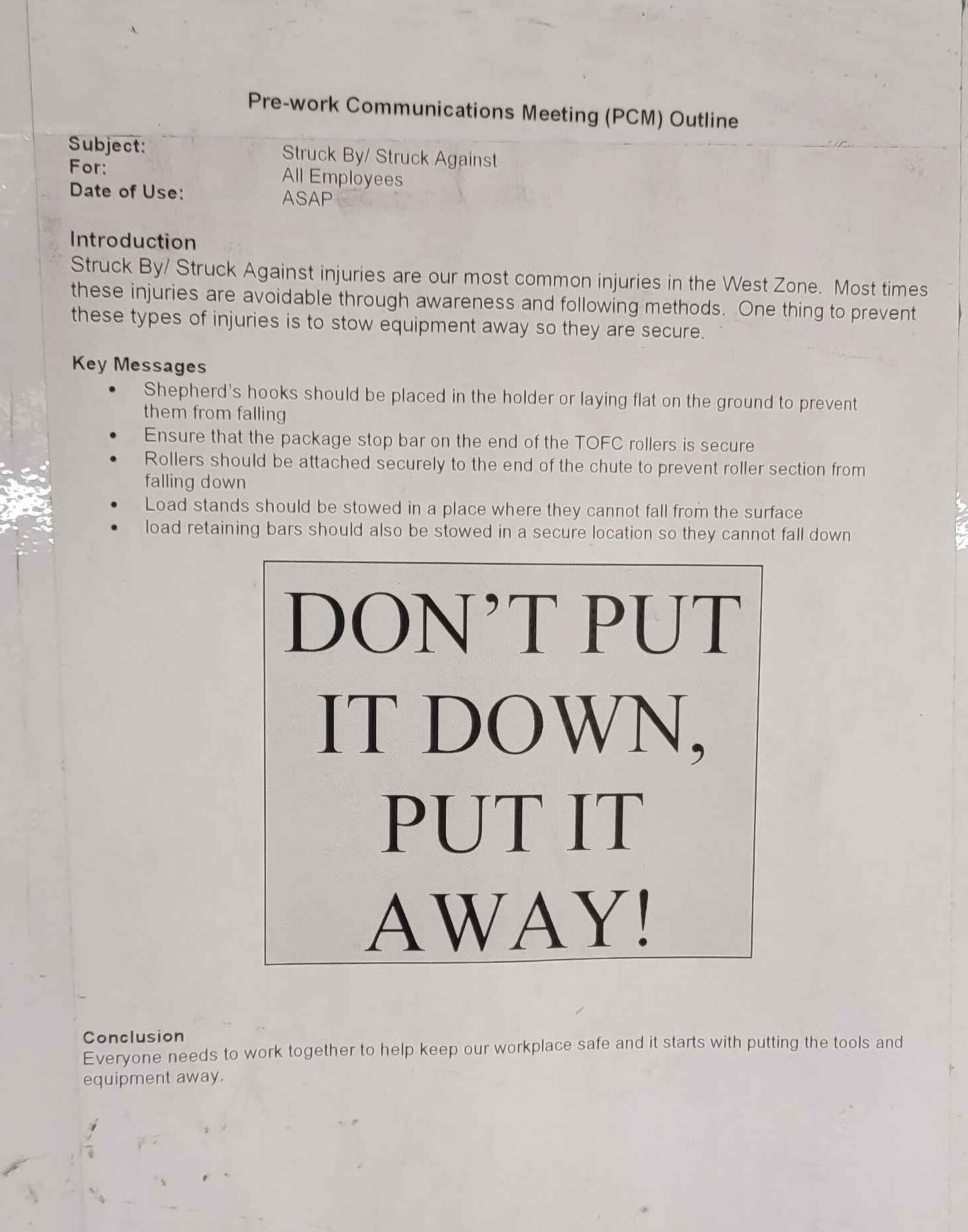 In rare cases, a supervisor may have to step in to enforce or restore safe working conditions, such as clearing blocked emergency exits. We usually never grievance in this situation.