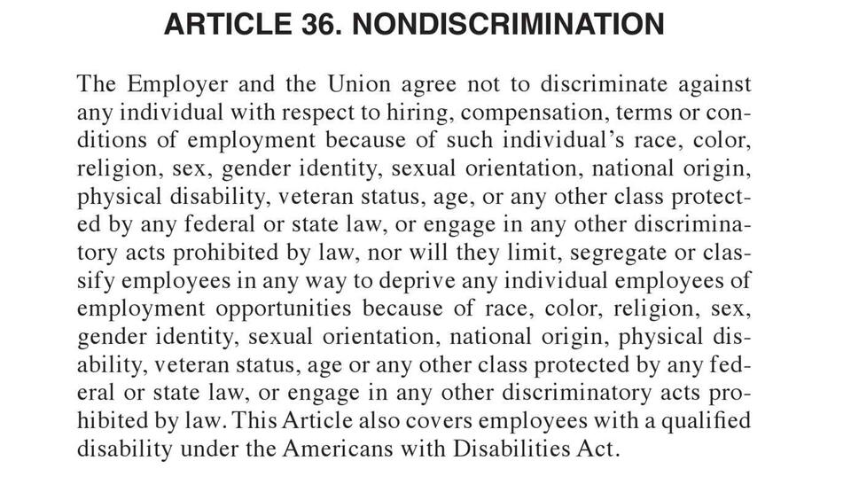 This section covers union operations, workplace conditions, employee rights, and management relations. It addresses supervision, discipline, paid time, technology, discrimination protections, and union activity. Guidelines for full-time and part-time employees, posting requirements, and package identification are included to ensure clear workplace policies and responsibilities for both employees and management.