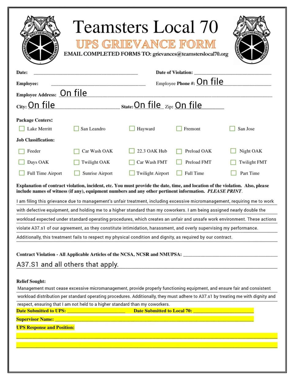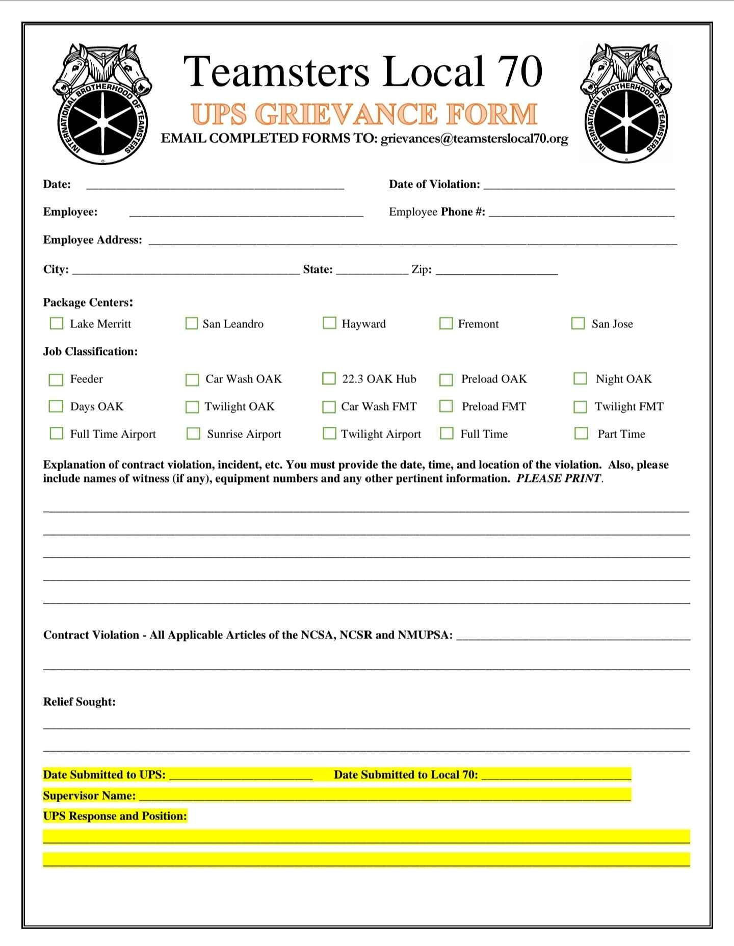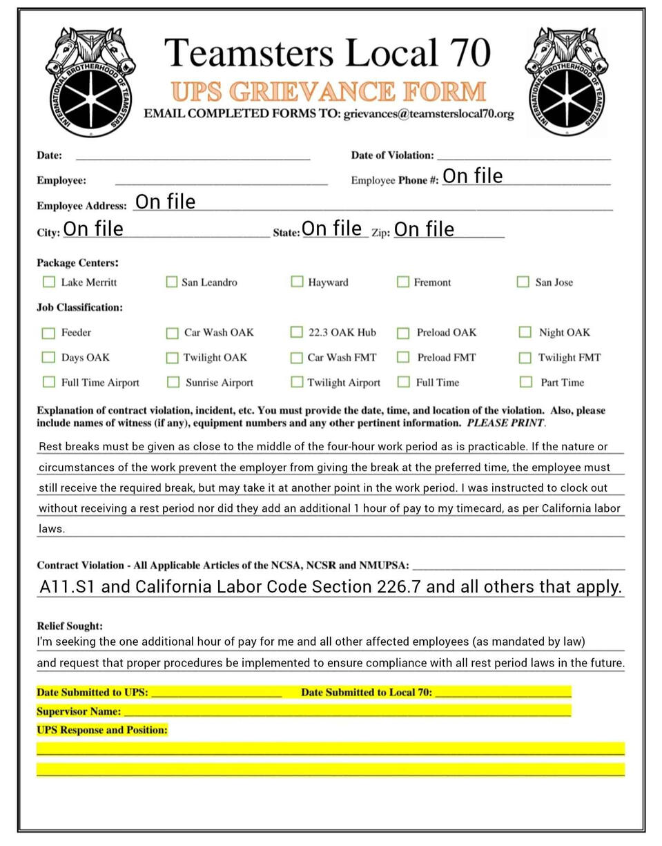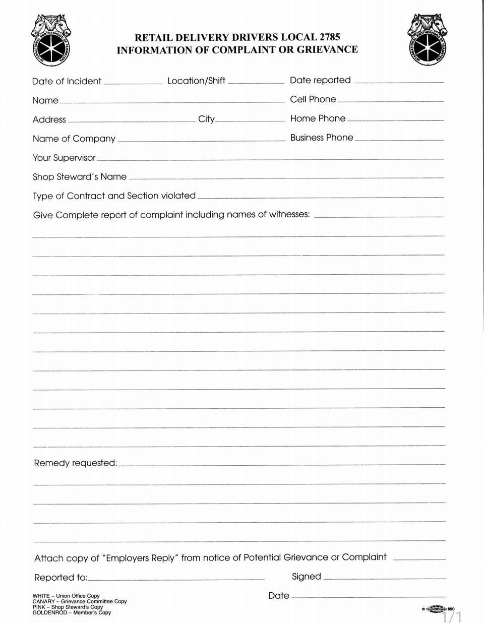Grievance forms you can fill out on your phone. templets and fresh copies available
