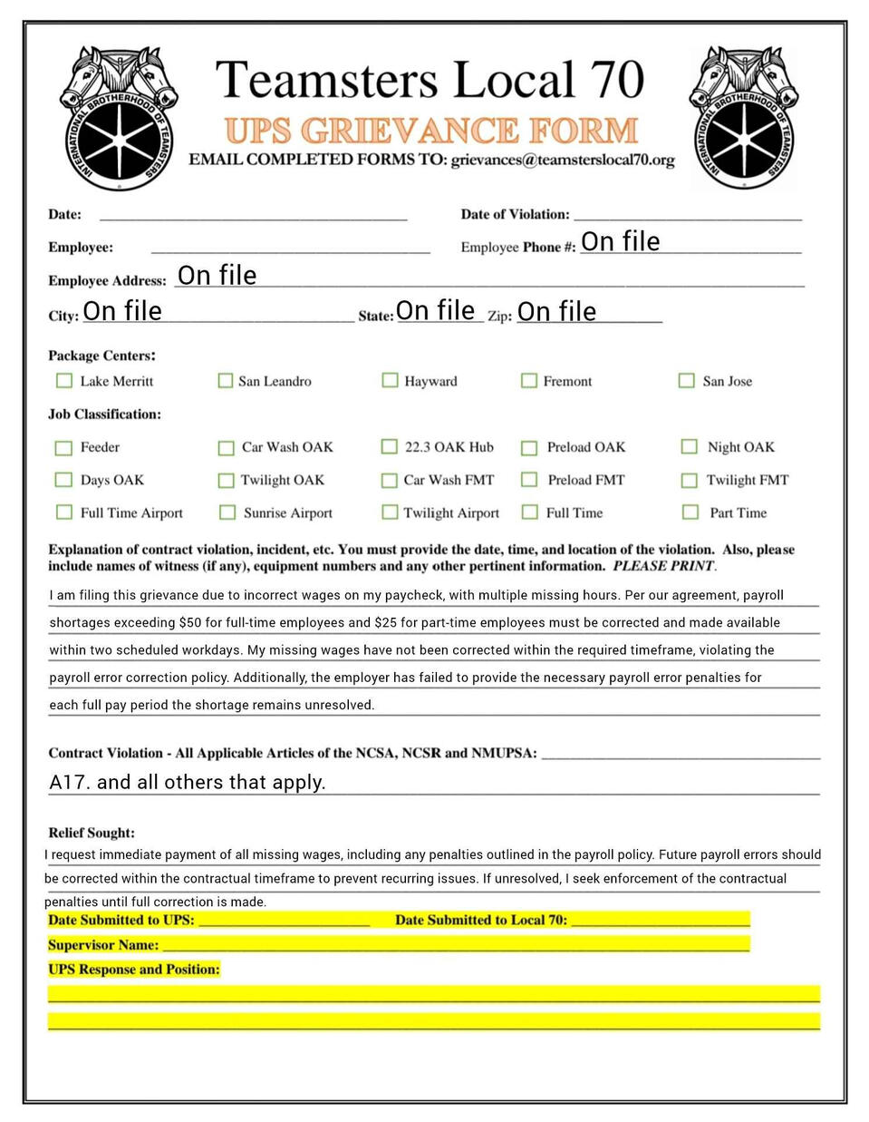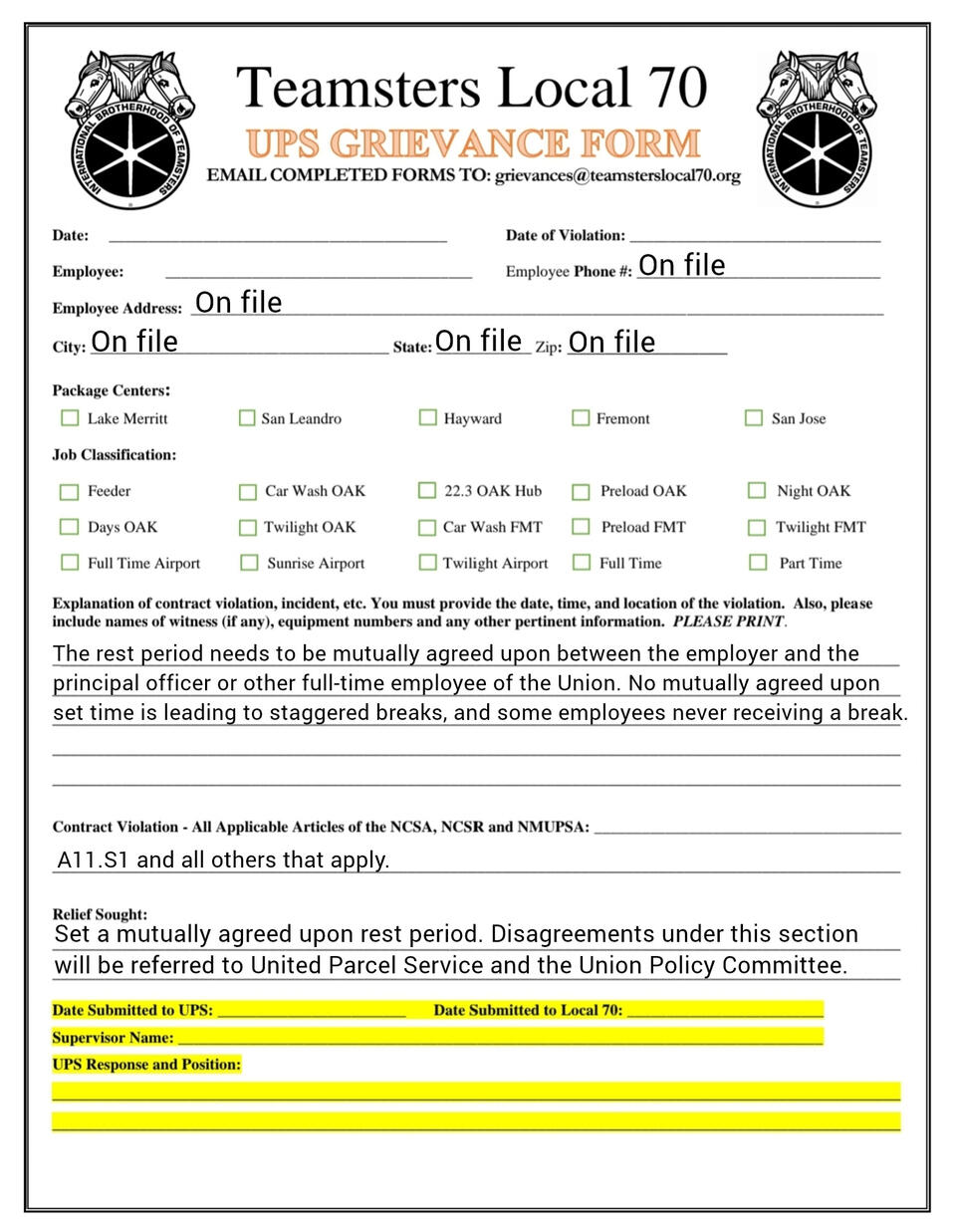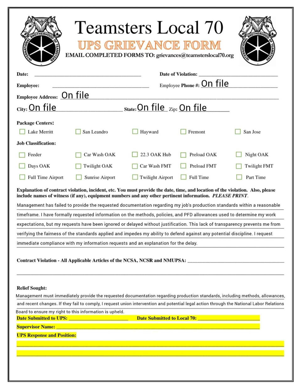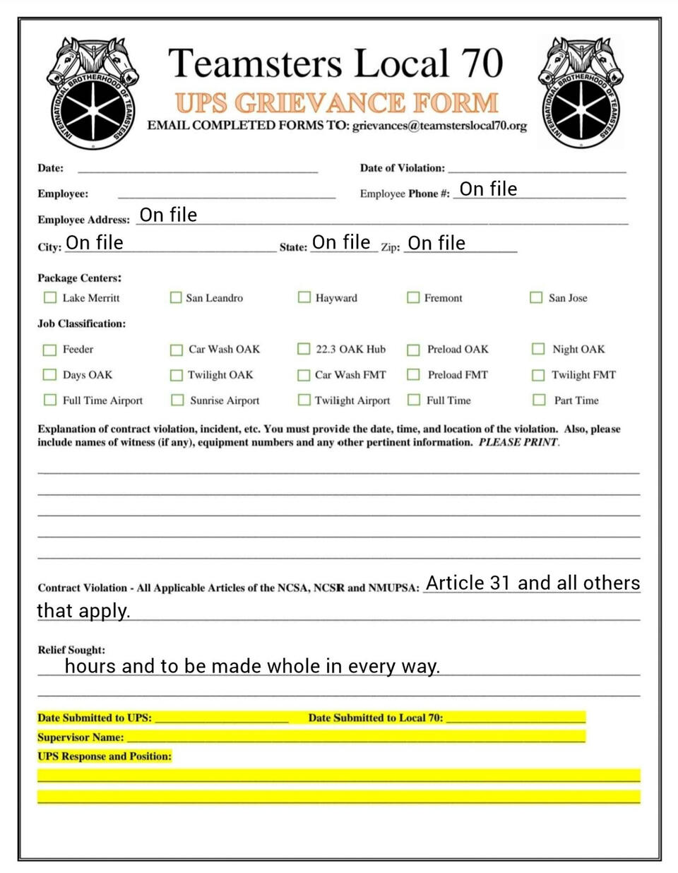 Grievance forms you can fill out on your phone. templets and fresh copies available