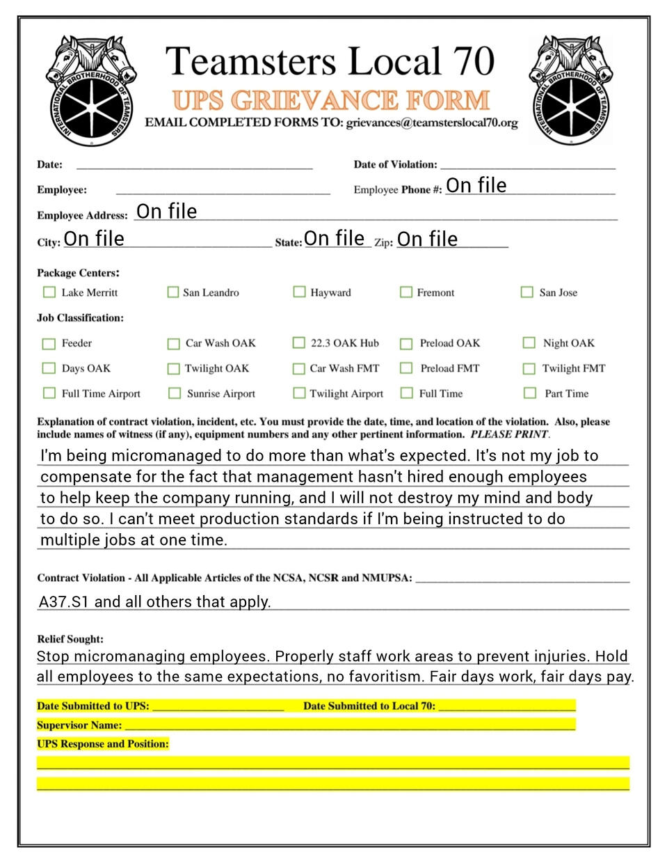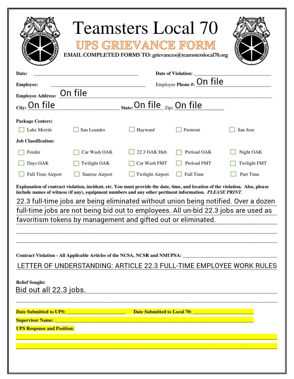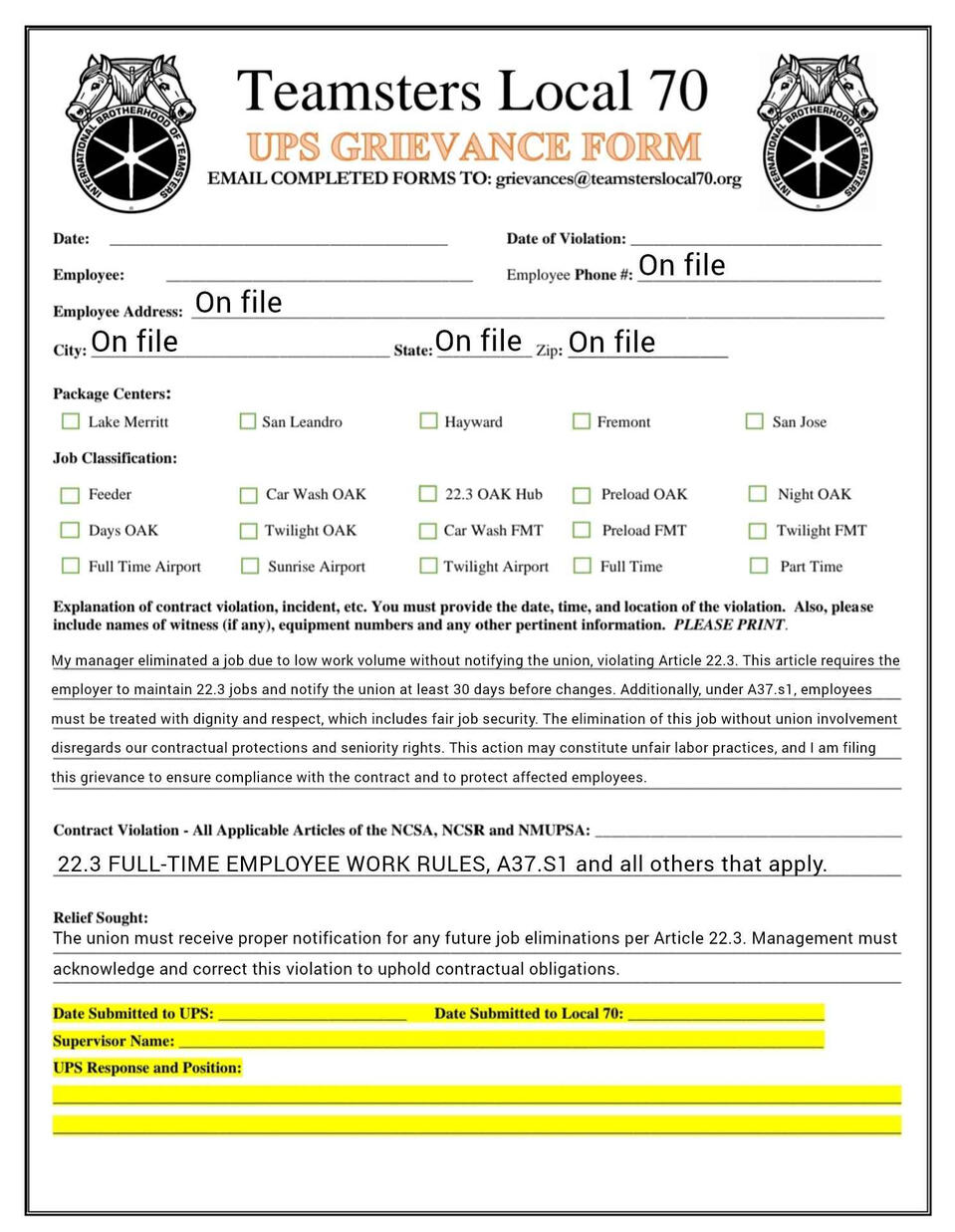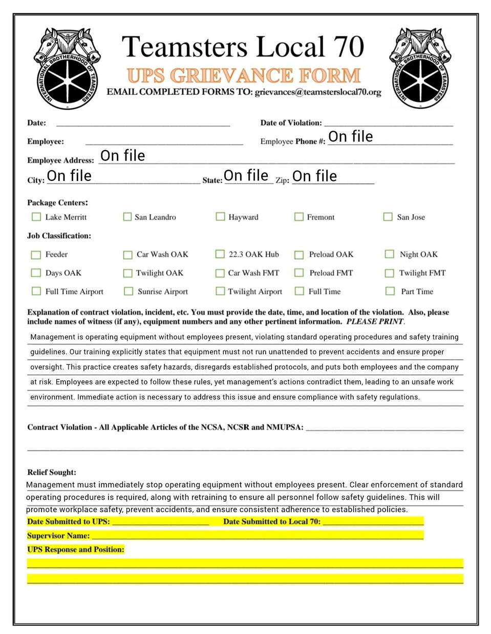 Grievance forms you can fill out on your phone. templets and fresh copies available