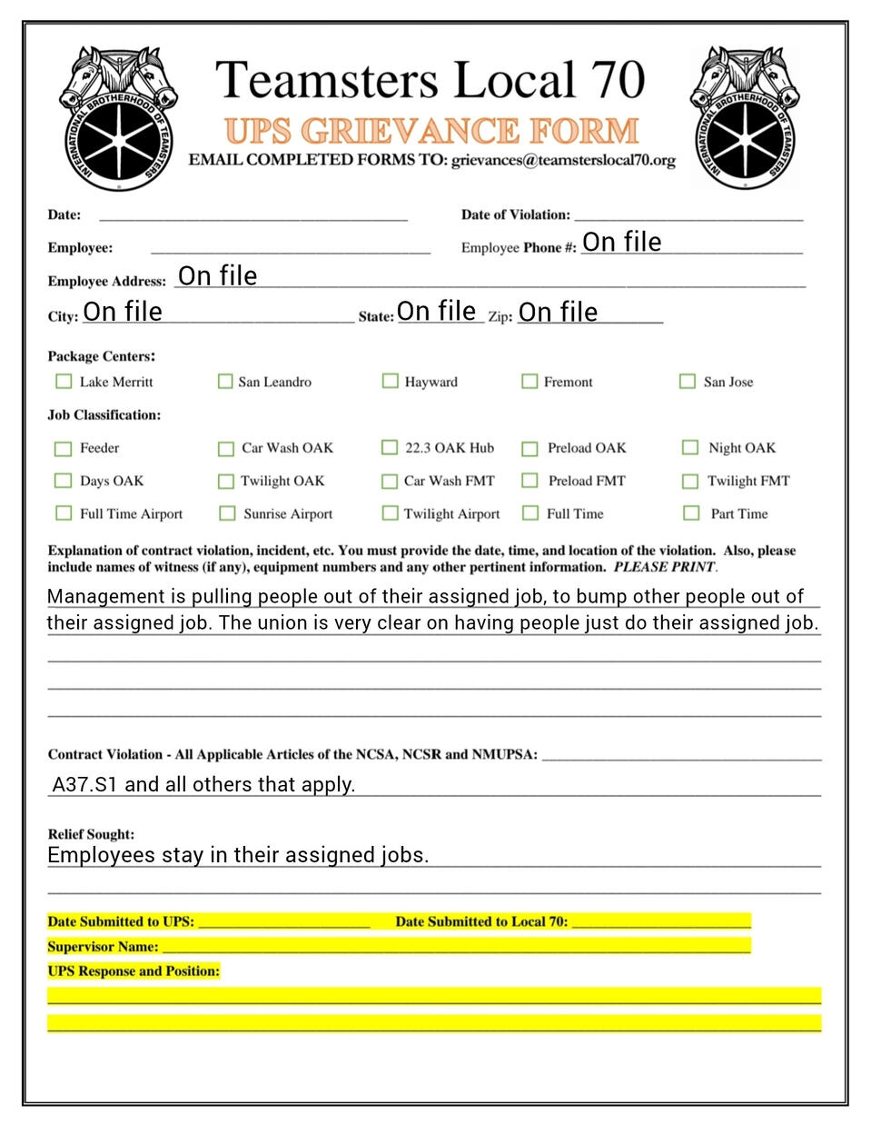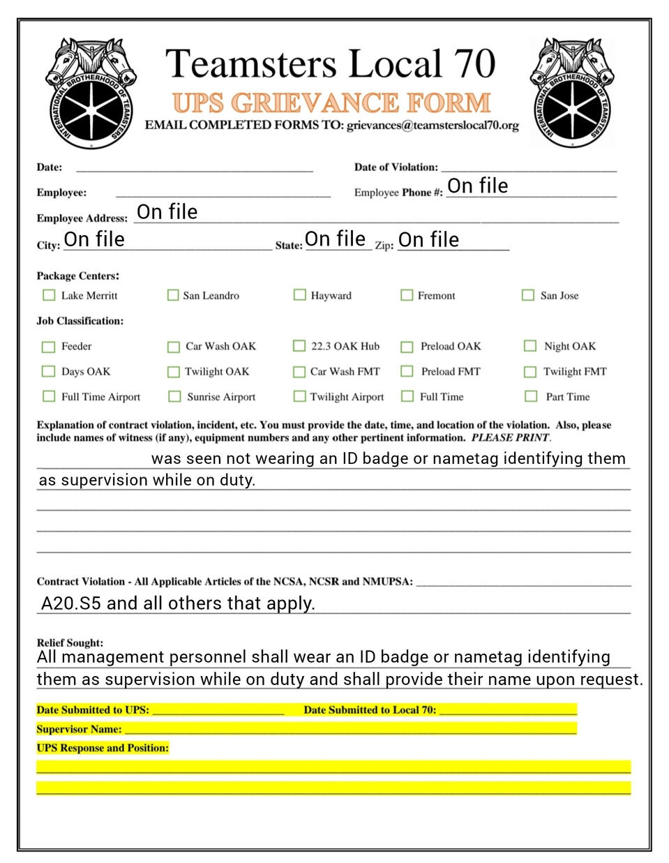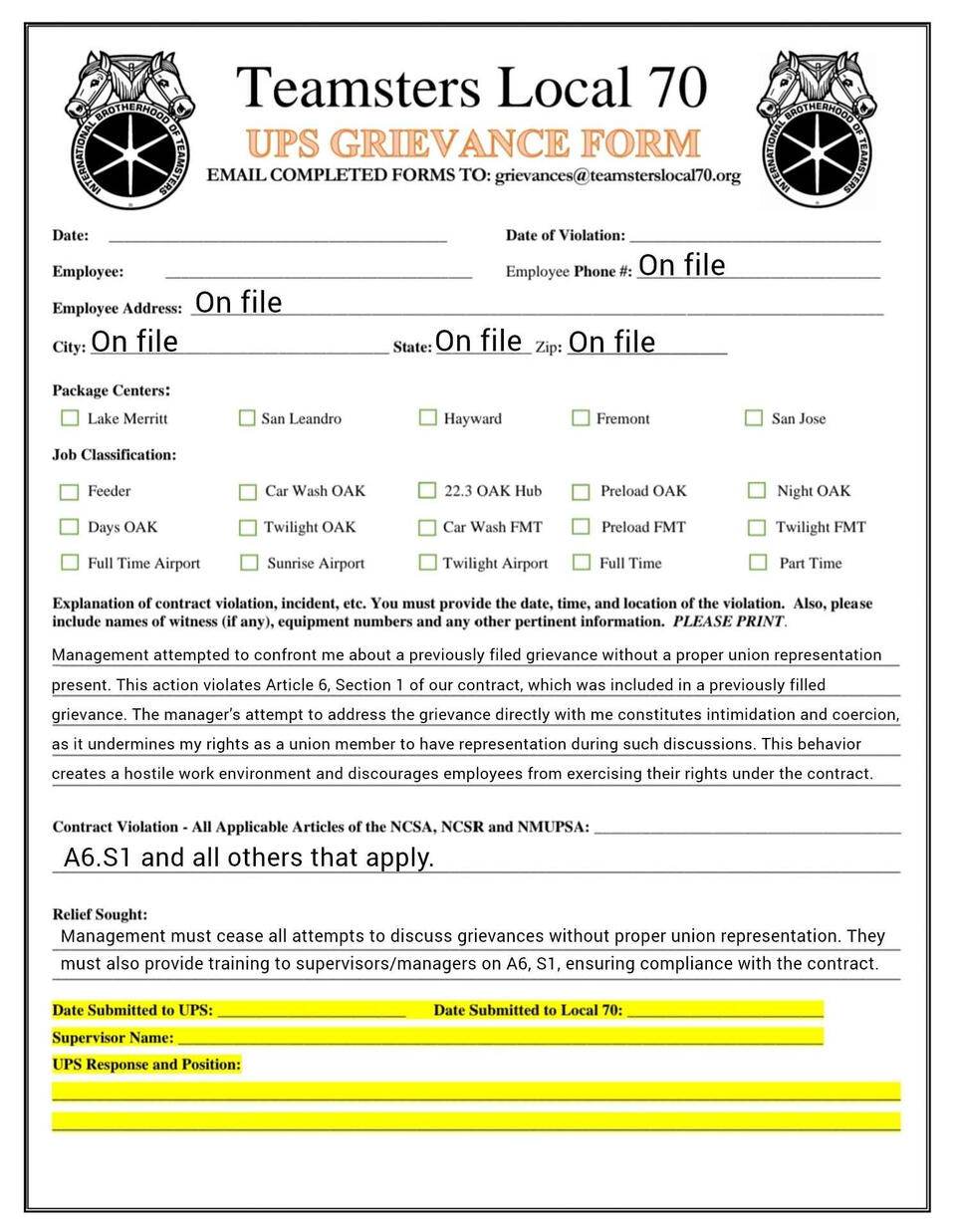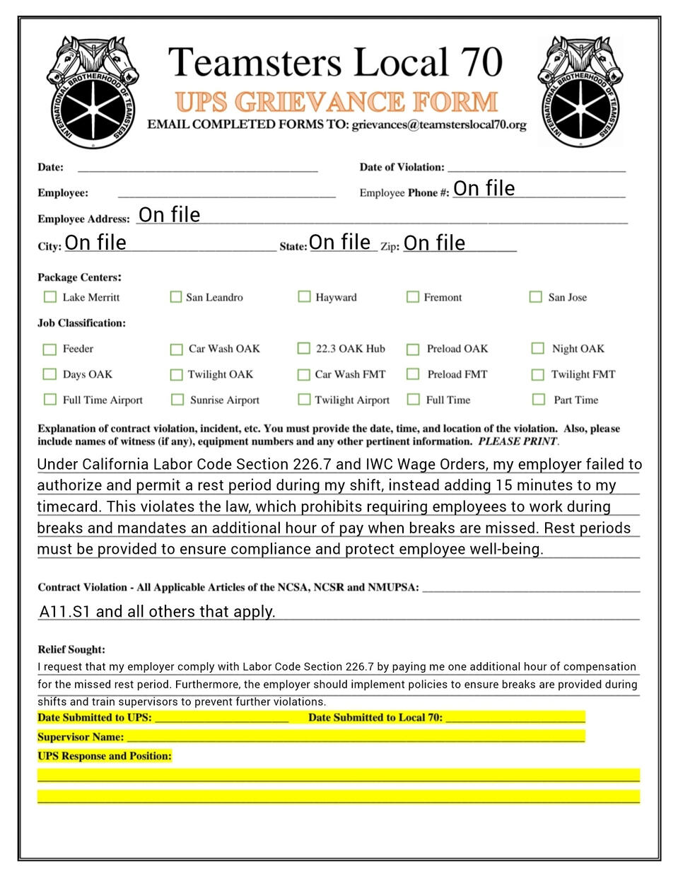 Grievance forms you can fill out on your phone. templets and fresh copies available