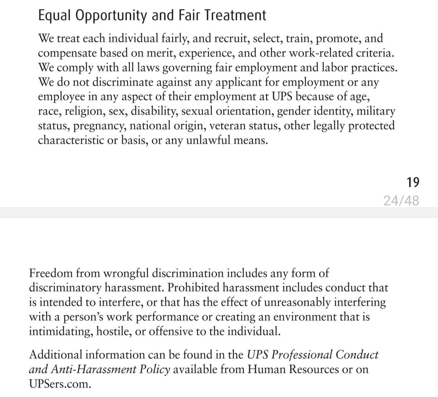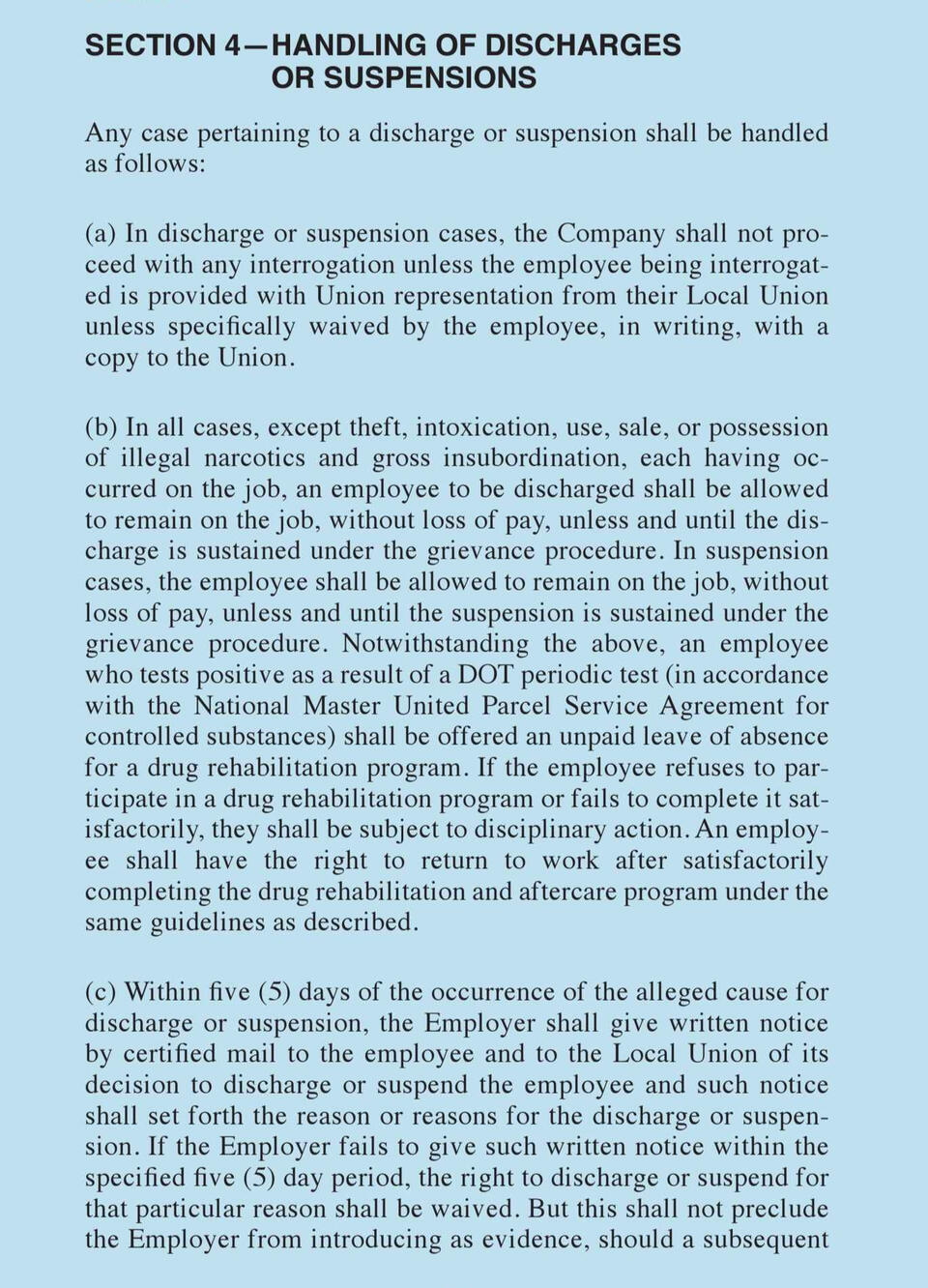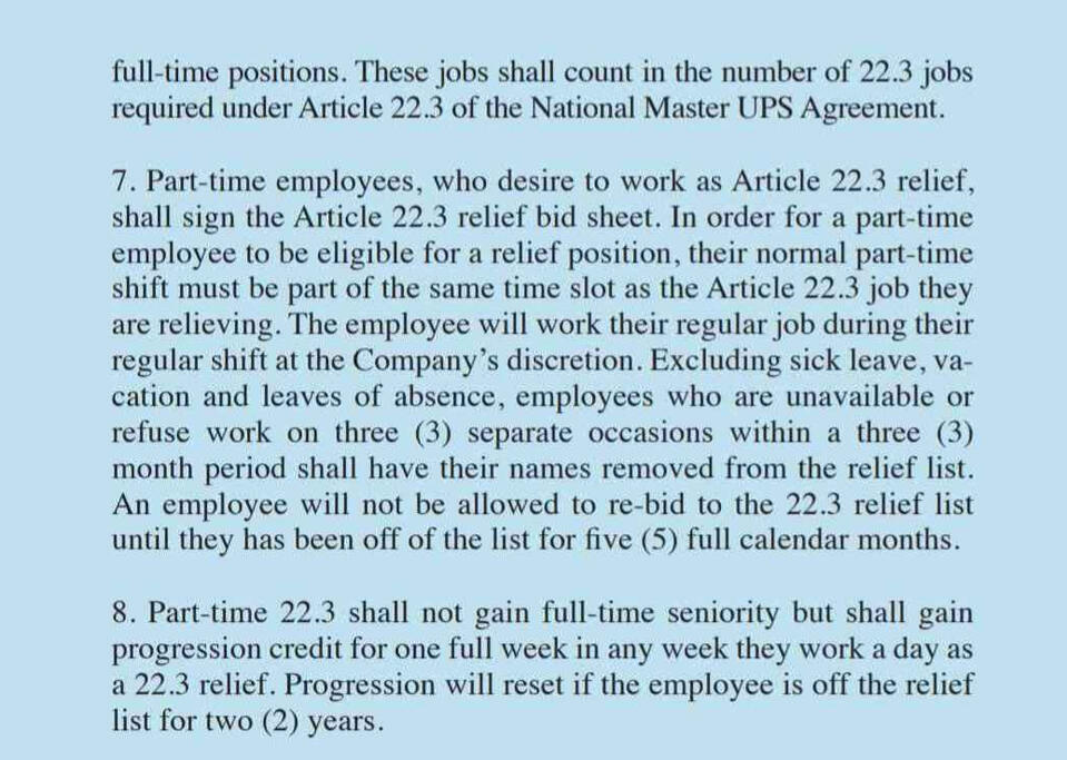 This section covers union operations, workplace conditions, employee rights, and management relations. It addresses supervision, discipline, paid time, technology, discrimination protections, and union activity. Guidelines for full-time and part-time employees, posting requirements, and package identification are included to ensure clear workplace policies and responsibilities for both employees and management.