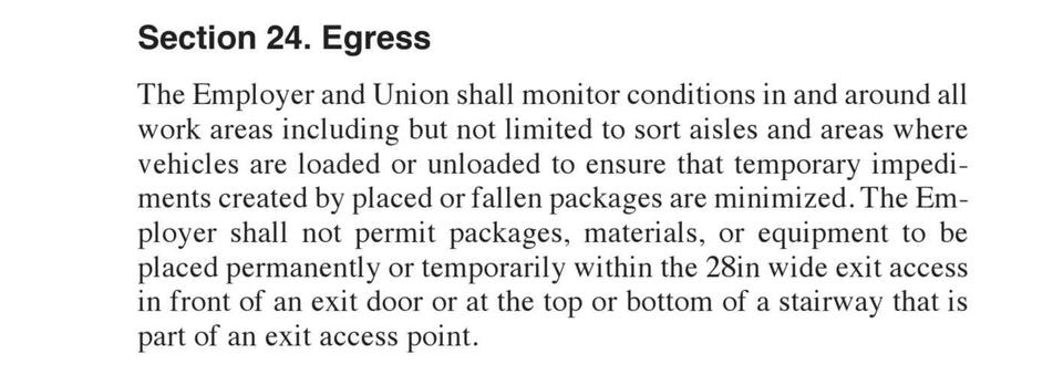 In rare cases, a supervisor may have to step in to enforce or restore safe working conditions, such as clearing blocked emergency exits. We usually never grievance in this situation.