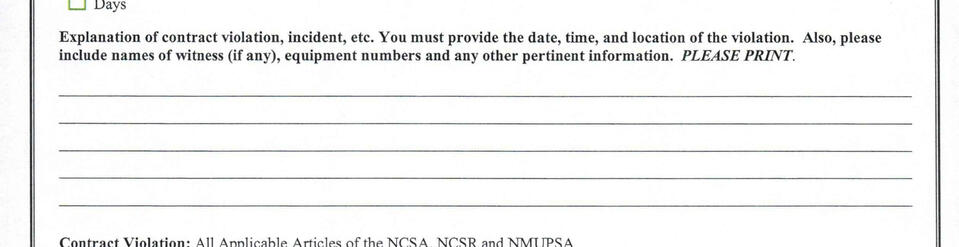 Review the contract for any applicable provisions or language. If the contract is unclear consult your business agent. Also check memorandum, letters of understanding, work rules, laws and past practices for possible violations.