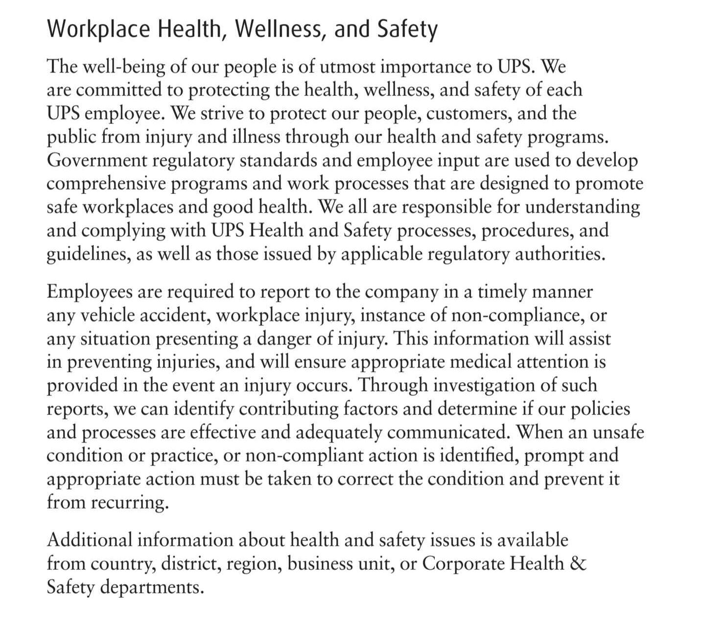 What it the Comprehensive Health and Safety Process for UPS?