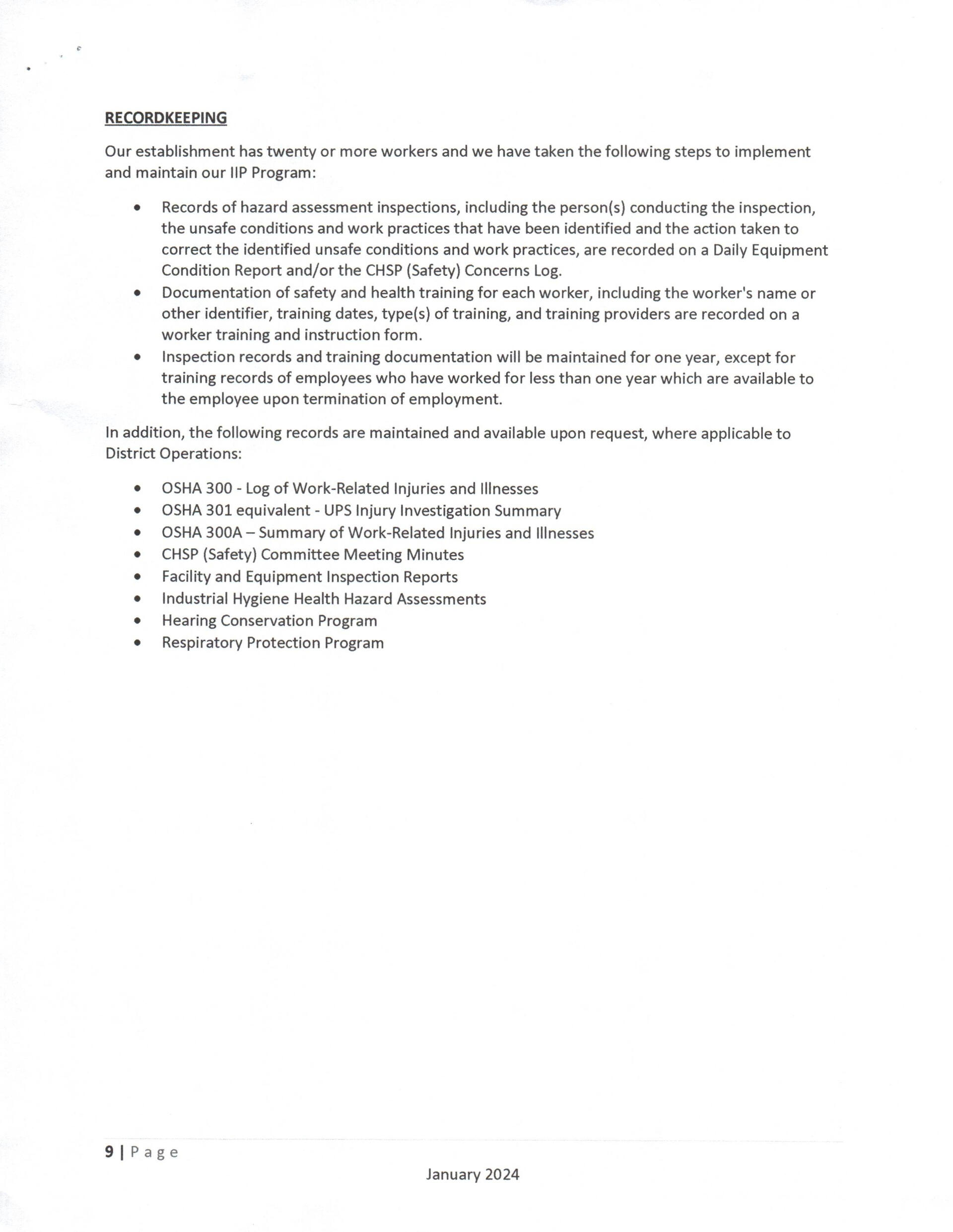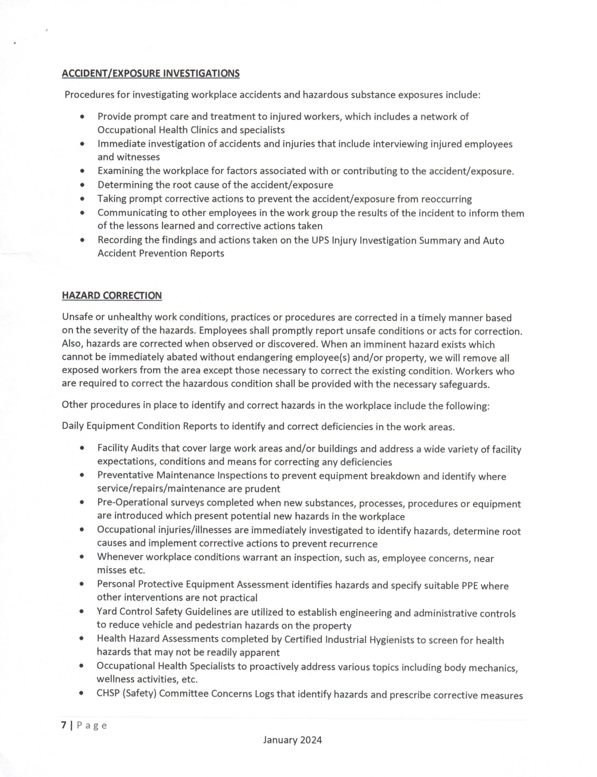 Comprehensive Health and Safety Process