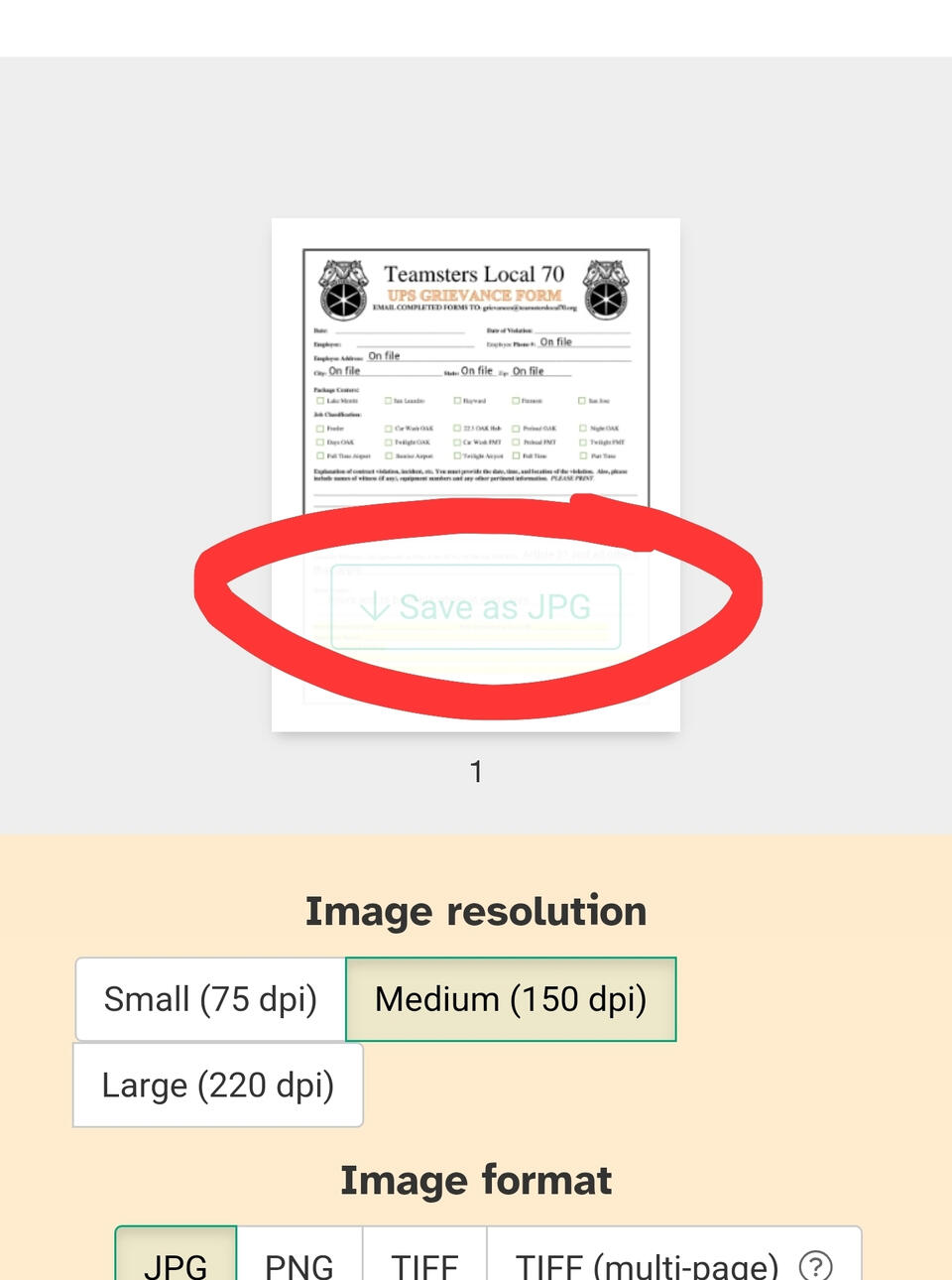 Click on PDF to JPG