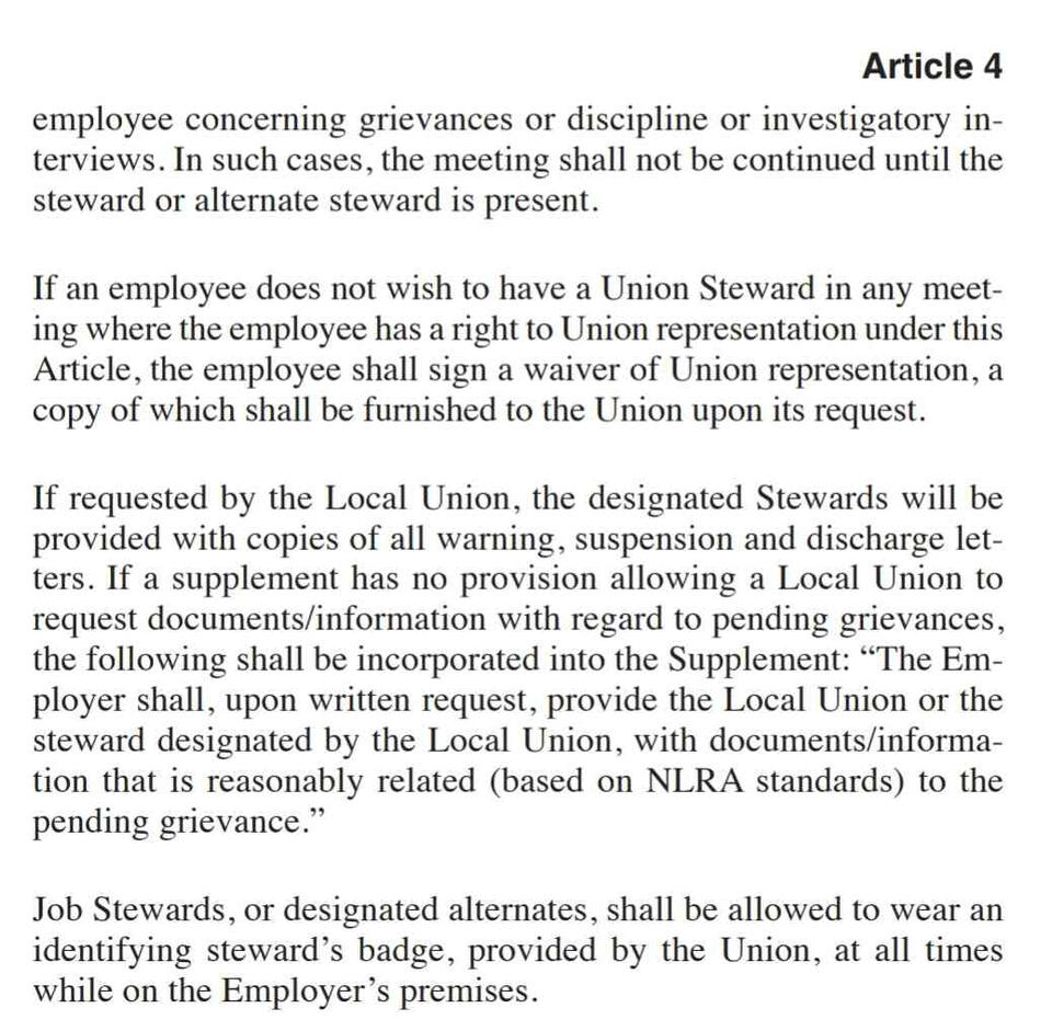 Union contract information